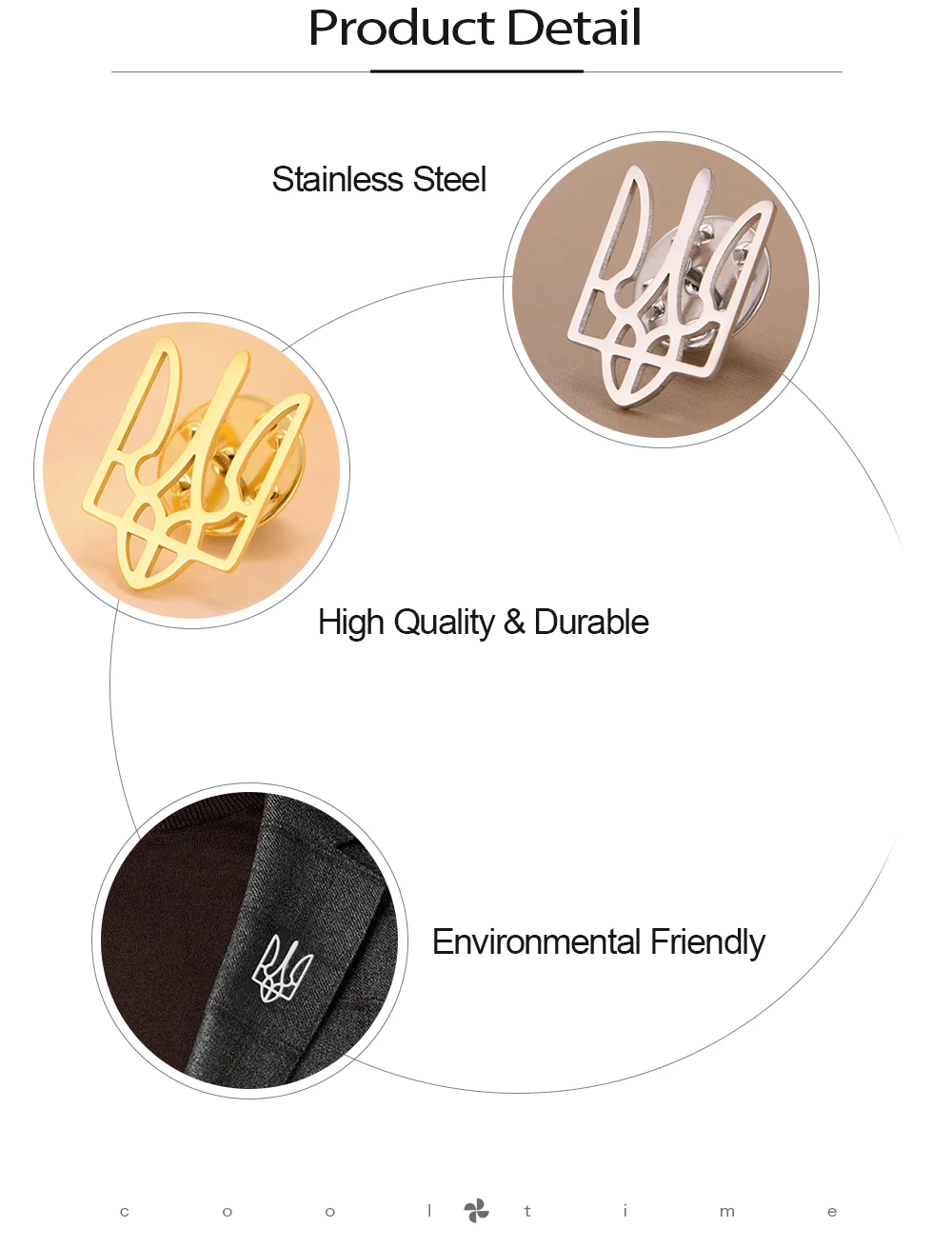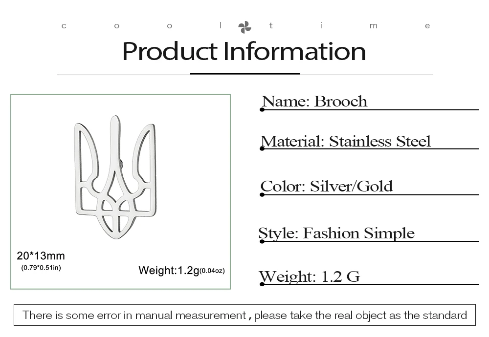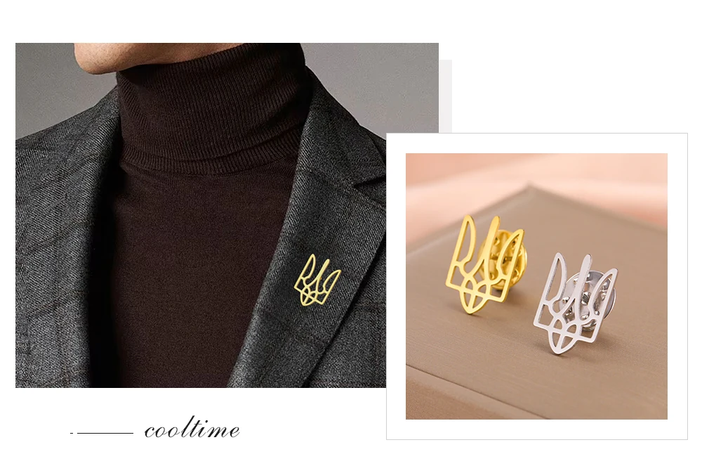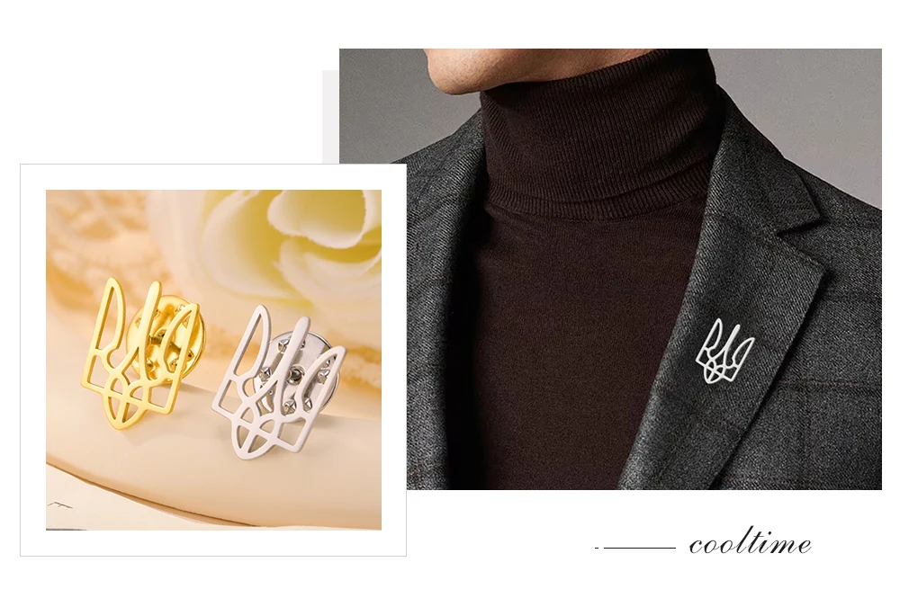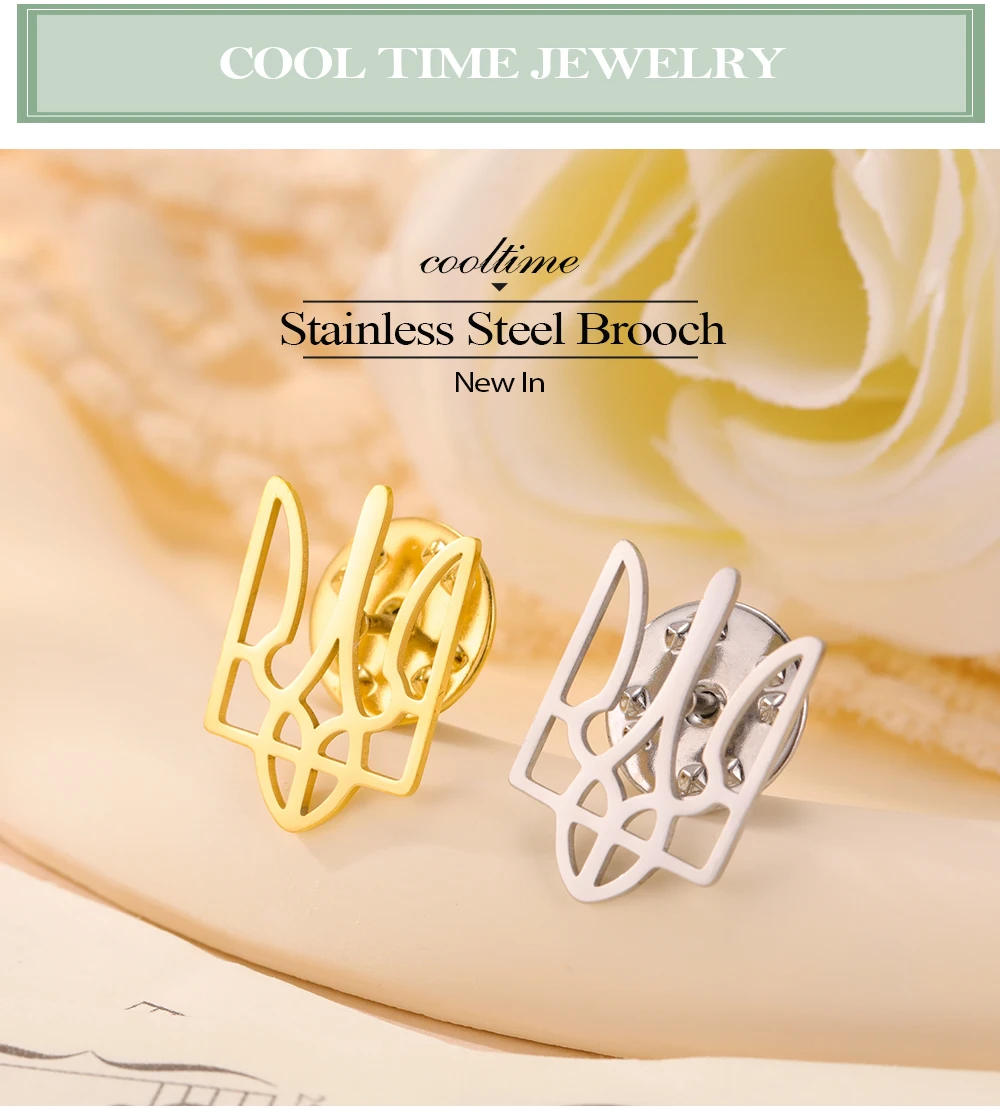 COOLTIME Ukrainian Trident National Emblem Brooch Stainless Steel Fashion Badge Brooch Pins Jewelry Clothing Accessories