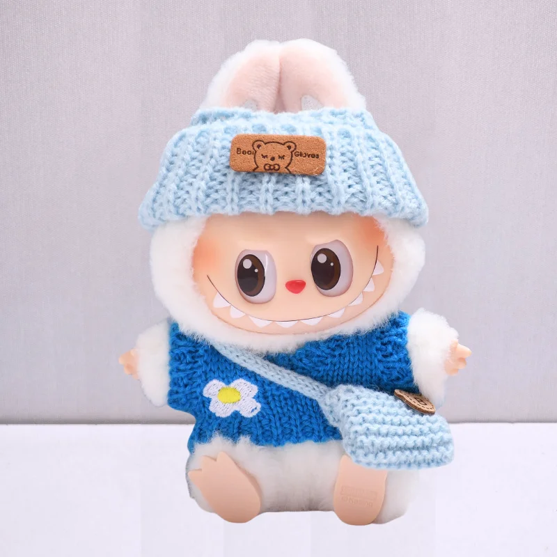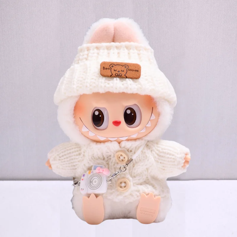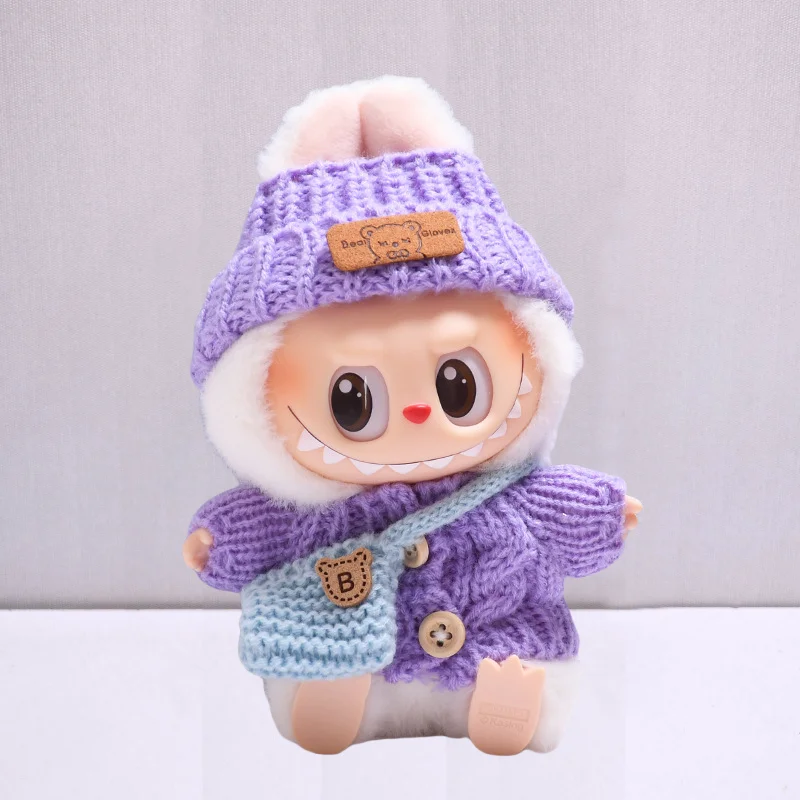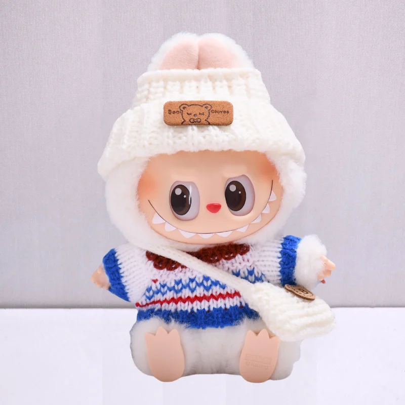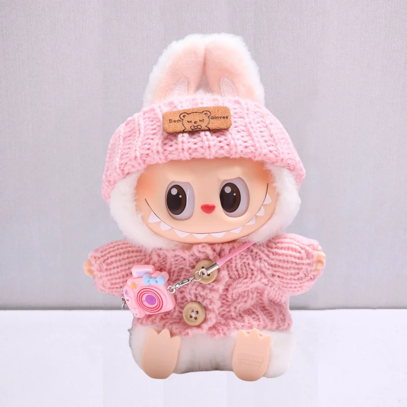 Doll Clothes Outfit Accessories For Korea Kpop EXO 17cm Labubu V2 V1 Winter Strawberry Love Sweater Anti freeze Kid Toy Gift