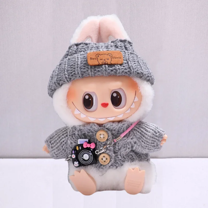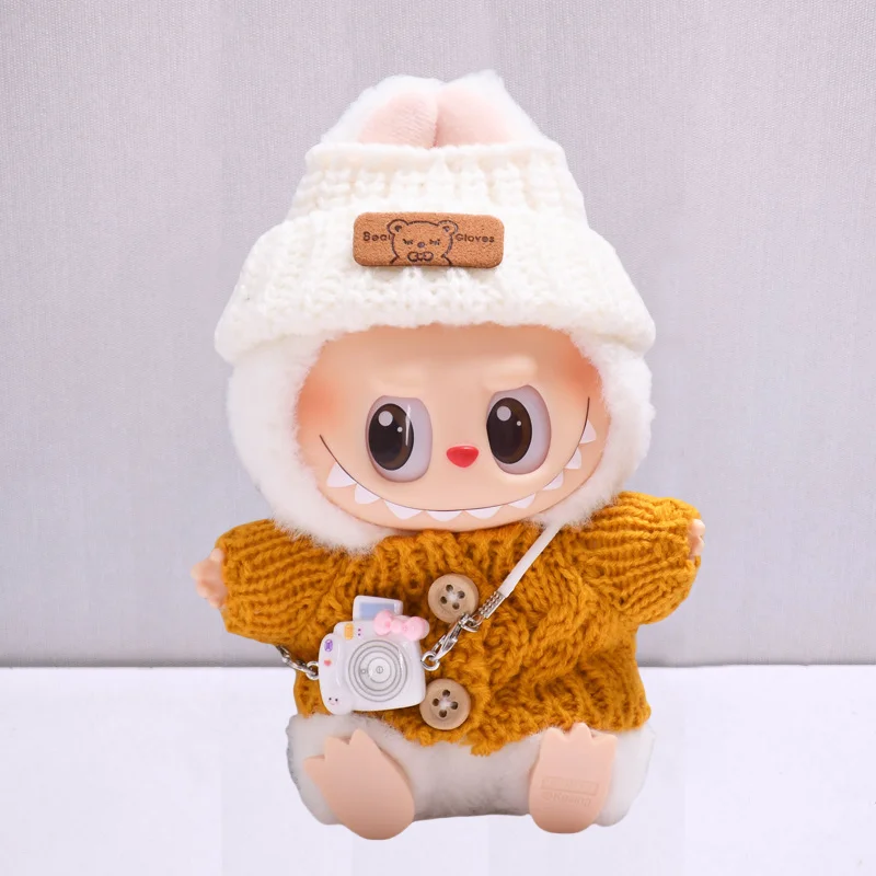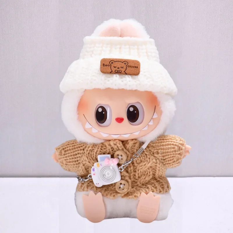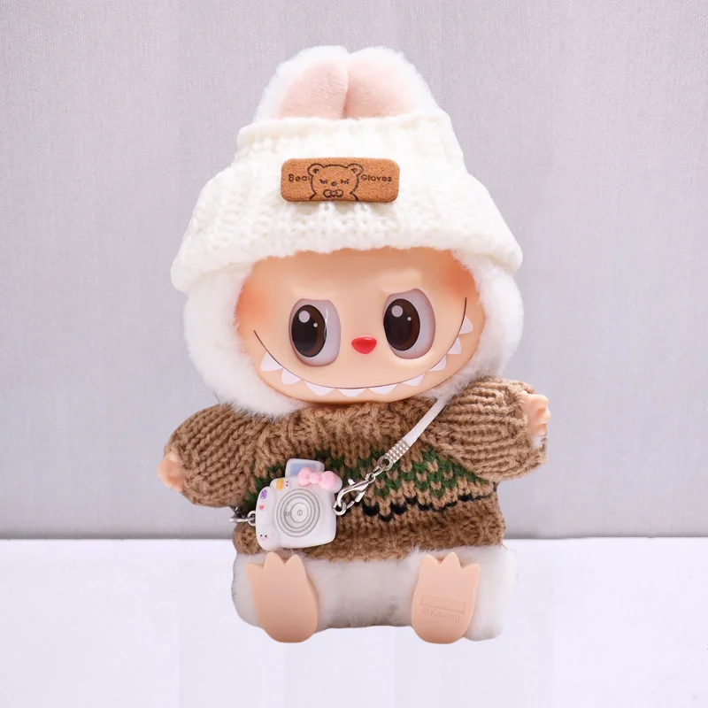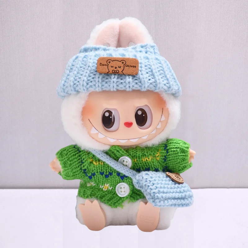 Doll Clothes Outfit Accessories For Korea Kpop EXO 17cm Labubu V2 V1 Winter Strawberry Love Sweater Anti freeze Kid Toy Gift