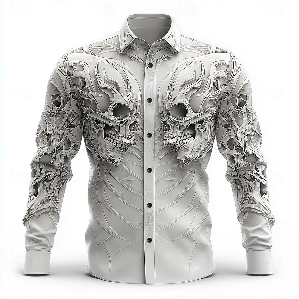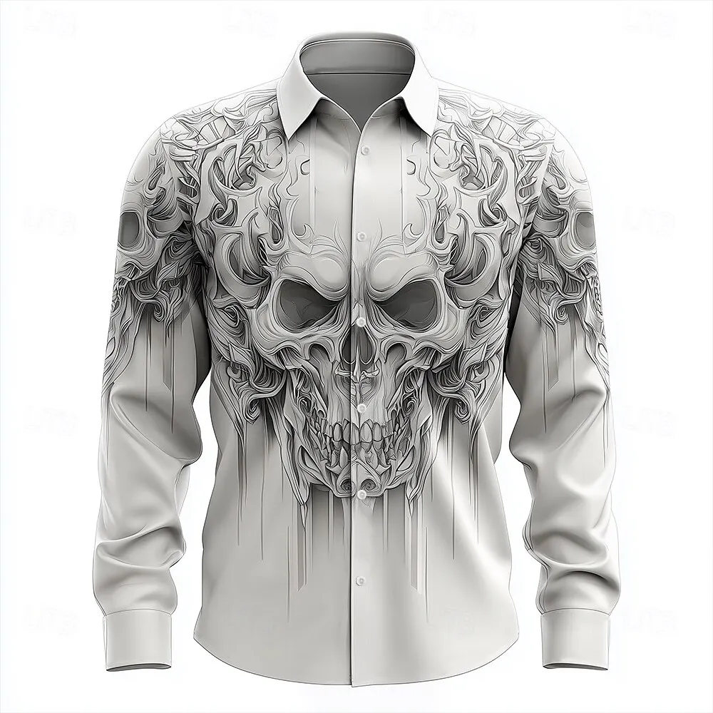 Hip Hop Skull Print Shirt Men Streetwear 2025 Long Sleeve Tops Urban Trendy Graphic Tee Shirt Casual Loose Fit Gothic Clothing