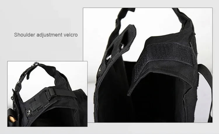 - Shoulder and waist side part adopt magic tape and buckle design which enables you to wear and take off this tactical vest rapidly and conveniently.